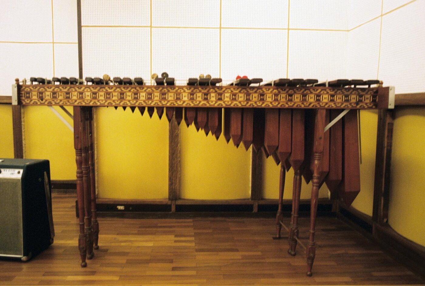 Il pianoforte Petrof, ancora presente, restituisce un timbro solido e controllato. Accanto, una collezione di strumenti costruita con curiosità concreta: una marimba messicana acquistata durante un viaggio in Messico da un musicista di strada e poi spedita in Italia via nave; campanacci di mucca di varie dimensioni assemblati da Umiliani in uno strumento artigianale; percussioni etniche raccolte nei suoi viaggi. Le campane tubolari – udibili in lavori come Atmospheres – completano questa architettura sonora: strumenti che appartengono al luogo tanto quanto al repertorio.